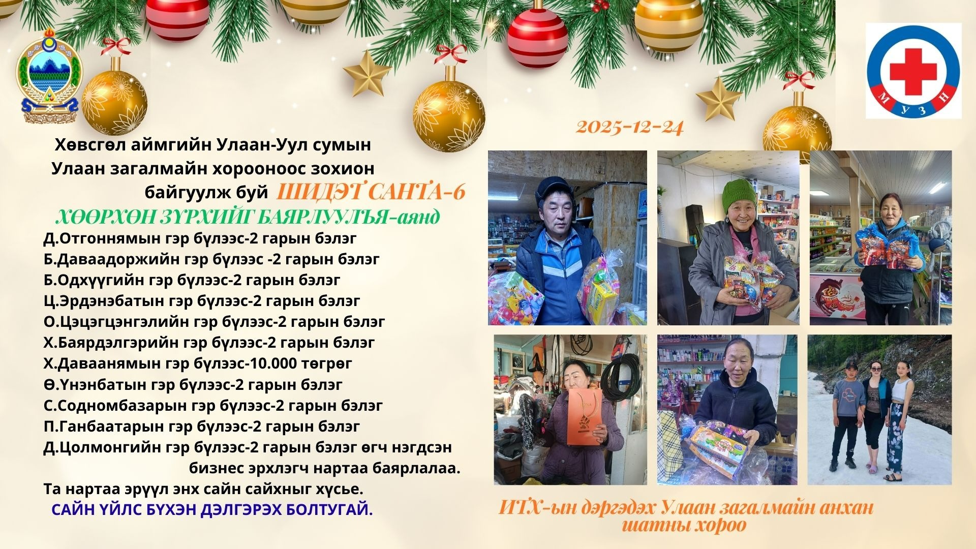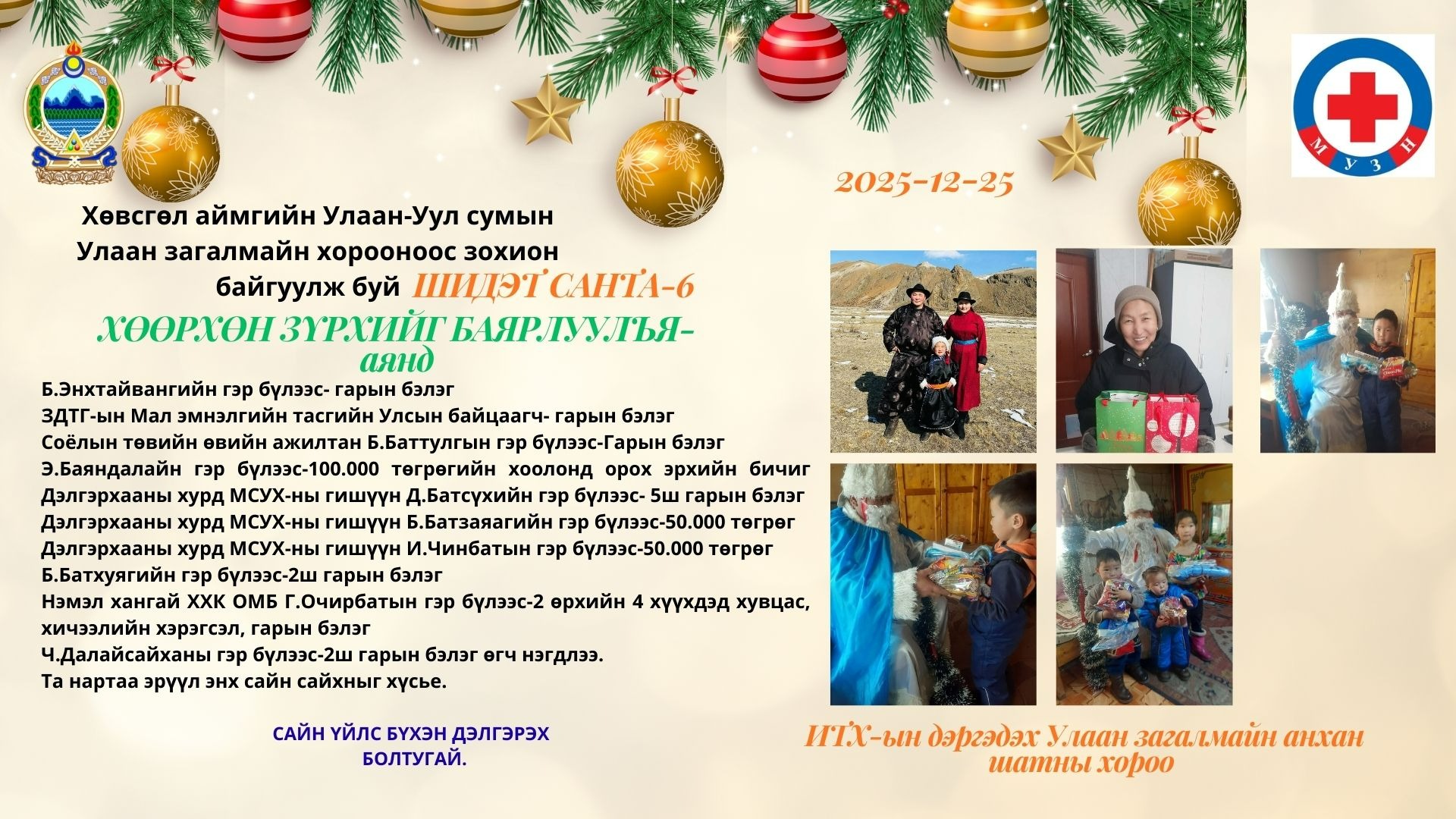 Шидэт санта буюу хөөрхөн зүрхийг баярлуулъя аяныг Улаан-Уул суманд зохион байгуулж ажиллалаа